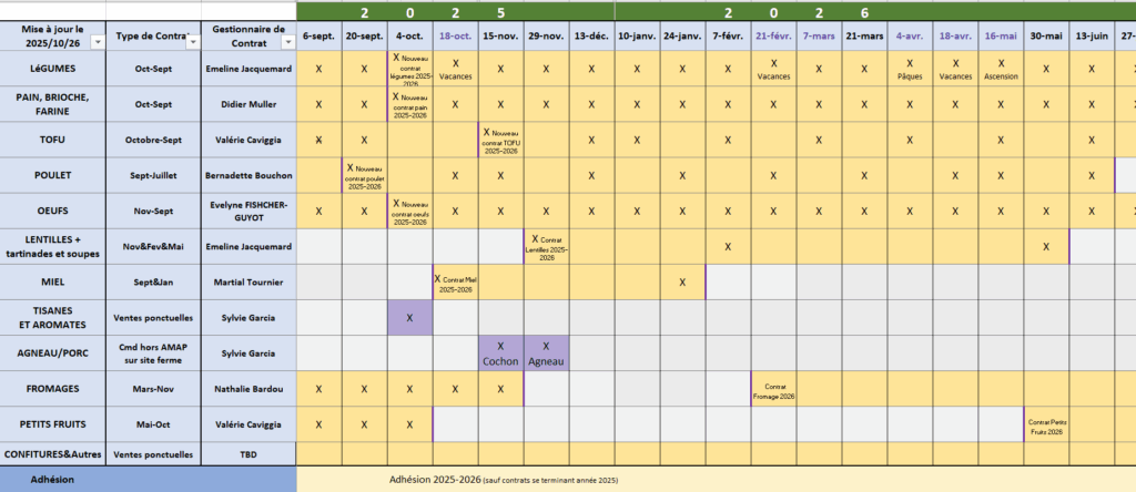 (Ce tableau est indicatif, en cas de doute, vérifier les dates indiquées dans chaque contrat)